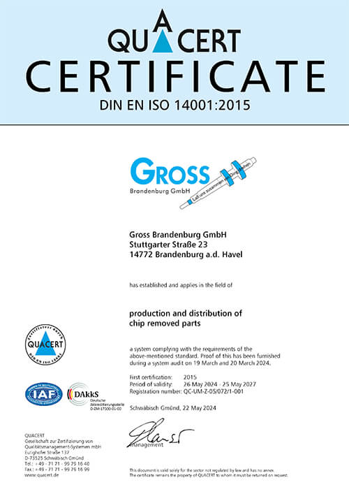 We are certified by IATF 16949, DIN EN ISO 14001 and DIN EN ISO 50001.